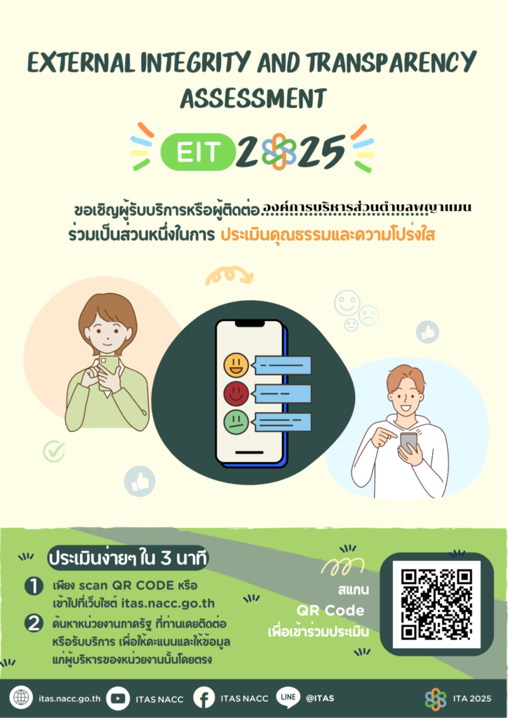 ขอเชิญชวน “ผู้มารับบริการหรือผู้มาติดต่อขององค์การบริหารส่วนตำบลพญาแมน” ร่วมเป็นส่วนหนึ่งในการประเมินคุณธรรมและความโปร่งใส